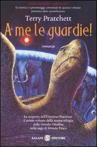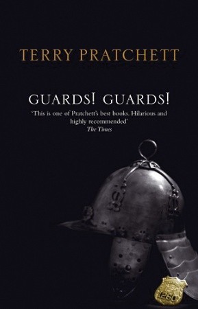 This week’s Friday Face-Off theme is a cover that is busy. I’ve chosen Sir Terry Pratchett’s Guards! Guards!