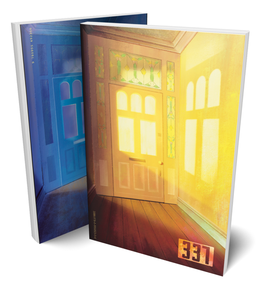 The version of the book I received is something a little special. It has two front covers. The main one is bright and vibrant, with a happy yellow light coming through the door. Flip the book over and the cover shows the same door, this time dimly lit in a dark, ominous light. These both reflect the book’s nature. There’s a beauty of a twist in the narrative, and depending on how you choose to take it, the story could be seen as one with a positive ending, or troubling. To do that, the author has done something very special and crafted a captivating story.